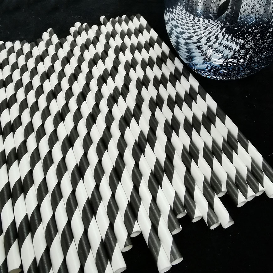 Black Stripe Paper Straw